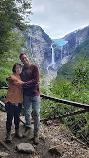 There was a hike that we had thought about doing about 30 minutes or so west of the community to the Exploradores Glacier that we thought would be a good way to kill some time. According to various sources it was only a 5 kilometre hike return and that the elevation change from the start to the end was only 100 metres, so we were surprised to also read that it was also a 4 hour hike. Well, once we started the hike was through a humid jungle we so learned why it takes people so long; it was anything but a flat walk. The path loosely followed a river traveling up for 25 minutes then down for 25 minutes. It followed this pattern over roots and big rocks for 2 kilometres until a junction to an upper platform and a lower platform. We ended up doing both; however, the lower platform was far superior as it was closer and had benches for us to cool off on from the hike and sit to marvel at the glacier in front of us. It even gave us an opportunity to talk to some Brazilians who complemented Paul on his ability to speak Portuguese. Paul found this a little concerning as he was speaking Spanish the entire time and suddenly became self conscious that his Spanish was so bad that people could be convinced he was speaking Portuguese poorly.